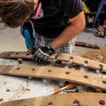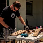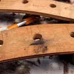 We had a nice and mellow couple of days over last weekend and I strapped on my ‘Vader’ mask and spent much of it outside soaking up the sun and building products. In the pictures I’m working on a wine rack. I specially shape the wine glass slots so that the glasses naturally rest at the inside end of the slot. This way the glasses won’t slip off the rack unintentionally. Since all barrel staves aren’t equal it takes a lot of measuring, checking, comparing, and rechecking, but I really enjoy it. I, also, built a few 5 hole and 3 hole table center pieces. Hole boring always leaves a ton of saw dust, smells of roasted oak, and exudes the wonderful aroma of wine. I love it! I found the saw dust to be a great absorber for minor run off when I change the oil in our cars.