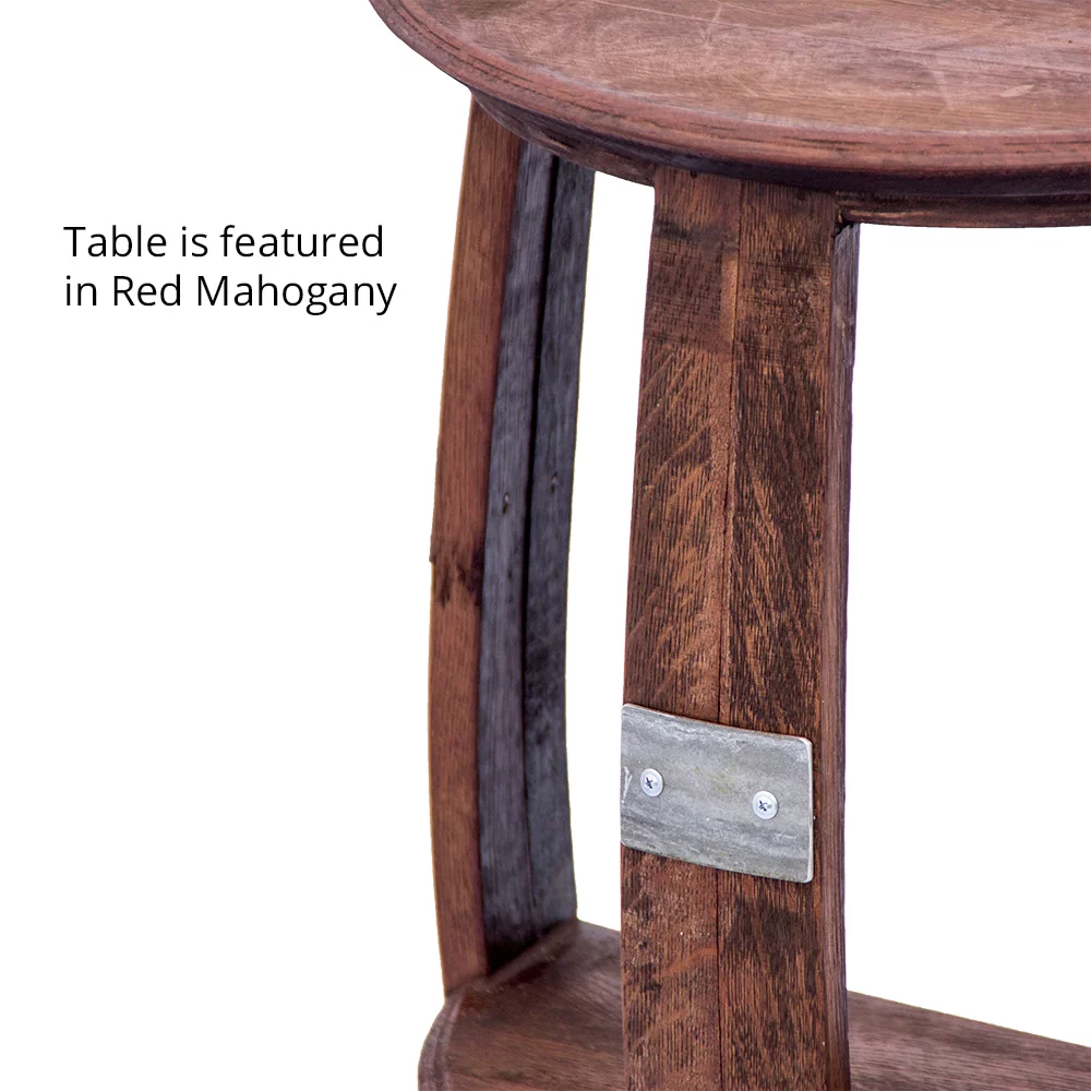 The Half Round Wine Barrel End Table with metal bands adds another level authentic pub style. This rustic table is made from a recycled solid oak reclaimed barrel end cap and staves. The metal bands are crafted from the hoops that once held the staves together as a barrel. It’s ideal for placing by a couch or wall where space is a concern and is a wonderfully functional conversation piece.