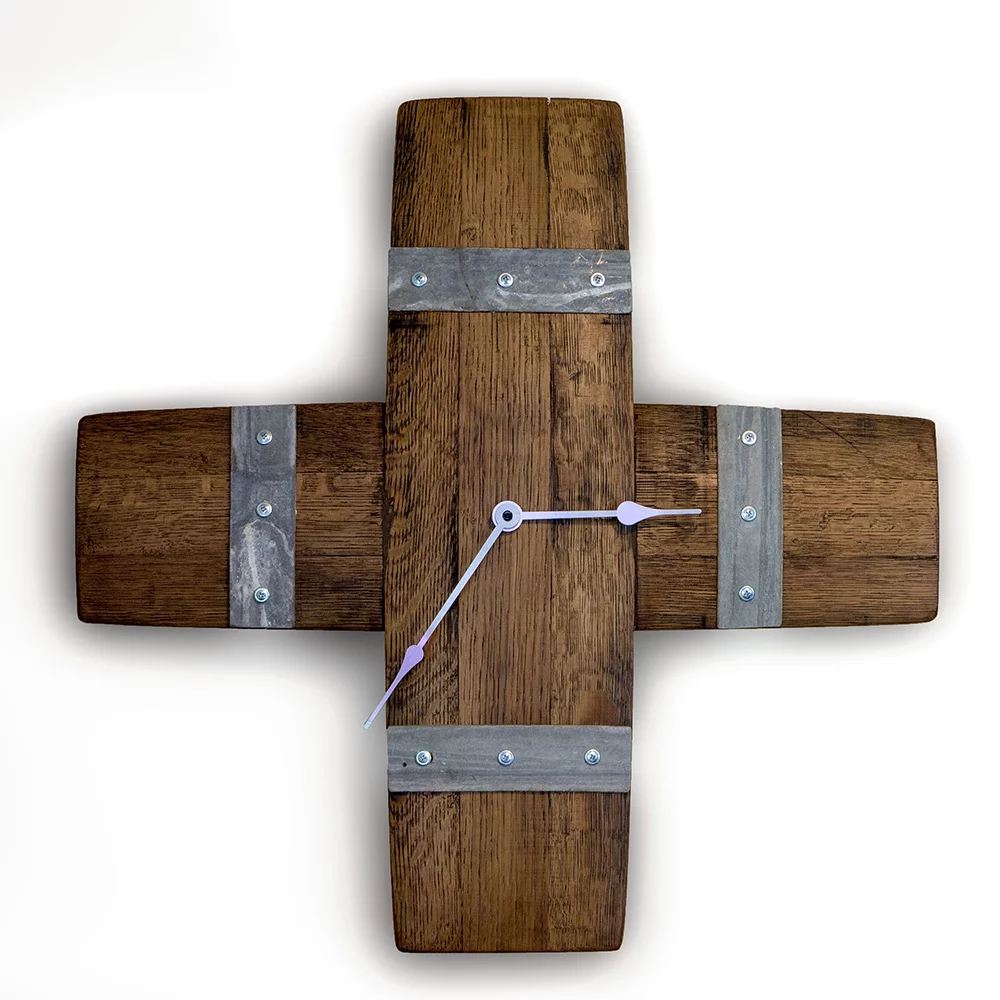 Reclaimed Crossed Barrel Stave Wall Clock